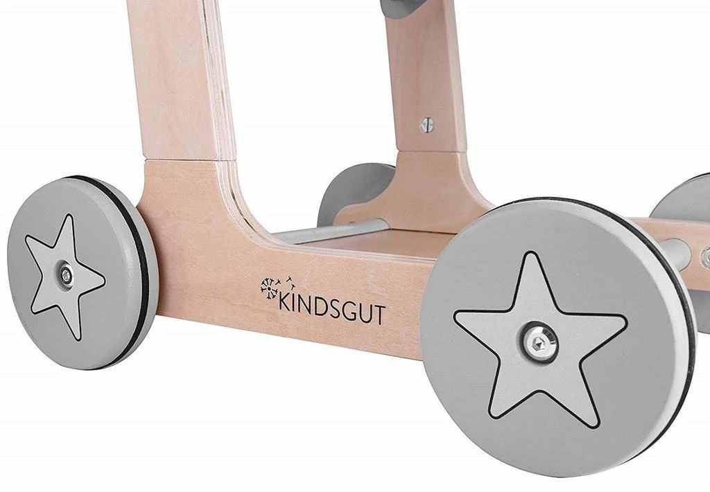 Kindsgut je německá rodinná společnost, která se specializuje na výrobu vysoce kvalitních dětských hraček, praktických doplňků a organizérů, které jsou navrženy s důrazem na funkčnost a estetiku. Založena byla v roce 2017 a sídlí v Berlíně. Produkty Kindsgut se vyznačují minimalistickým designem, jemnými barvami a unisex provedením, což umožňuje, aby harmonicky ladily s interiérem domácnosti. Hračky jsou navrženy tak, aby rozvíjely kreativitu a motorické dovednosti dětí, přičemž jsou zároveň esteticky příjemné i pro rodiče. Mezi oblíbené produkty patří například ikonické velrybí nočníky, které kromě funkčnosti dodávají koupelně hravý a moderní prvek. Společnost Kindsgut klade velký důraz na ekologickou udržitelnost a společenskou odpovědnost. Například z každého prodaného nočníku ve tvaru velryby je část výtěžku věnována organizaci whales.org, která se věnuje ochraně velryb a mořského života. Kromě toho společnost za každý prodaný dřevěný výrobek zasadí strom ve spolupráci s organizací trees.org, čímž přispívá k celosvětovému zalesňování. Důležitým aspektem produktů Kindsgut je jejich bezpečnost a kvalita. Všechny výrobky procházejí přísnými kontrolami a splňují evropské i mezinárodní bezpečnostní normy, aby byly pro děti zcela bezpečné. Díky kombinaci moderního designu, praktičnosti a ekologické odpovědnosti si značka Kindsgut získala popularitu mezi rodiči, kteří hledají kvalitní a stylové produkty pro své děti.