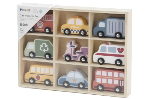 Dřevěná sada 9 dopravních prostředků. Baleno v dřevěné krabičce. Barevné provedení a různé typy vozidel podporují kreativní hru, rozvíjejí fantazii i jemnou motoriku. Díky bezpečnému zpracování je ideální pro každodenní hraní i jako krásný dárek.