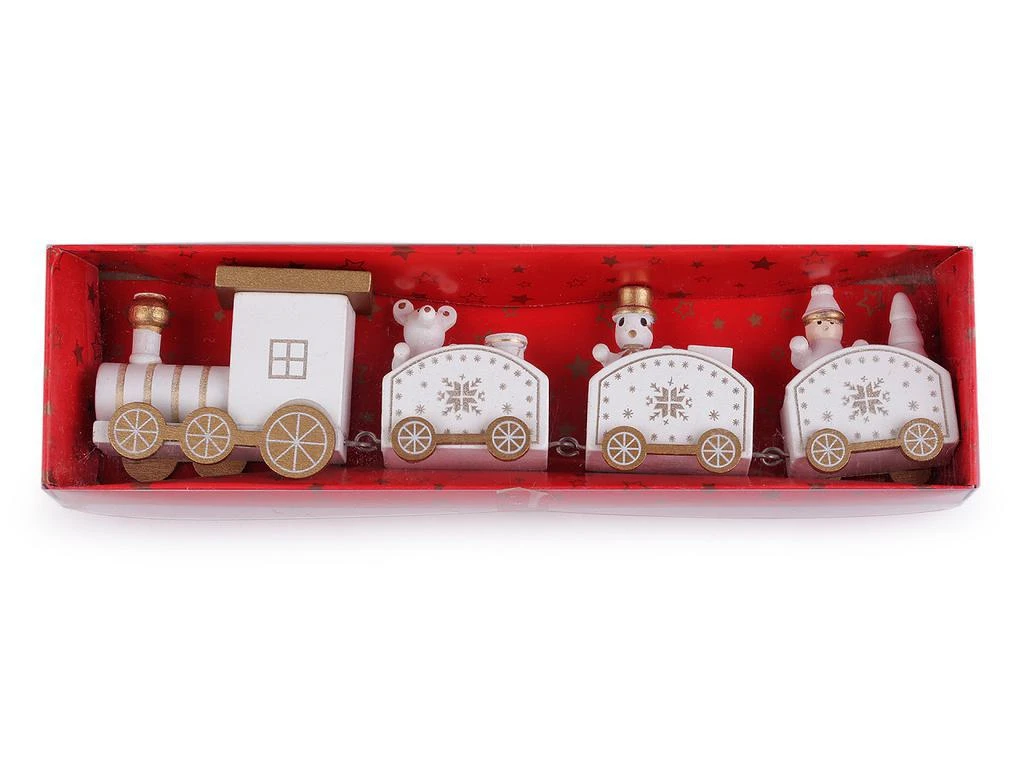 Dřevěný vláček k vánočnímu aranžování bílý