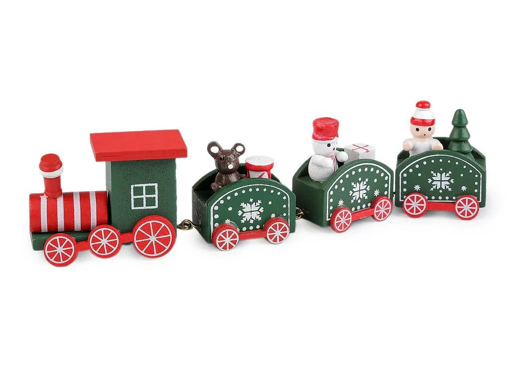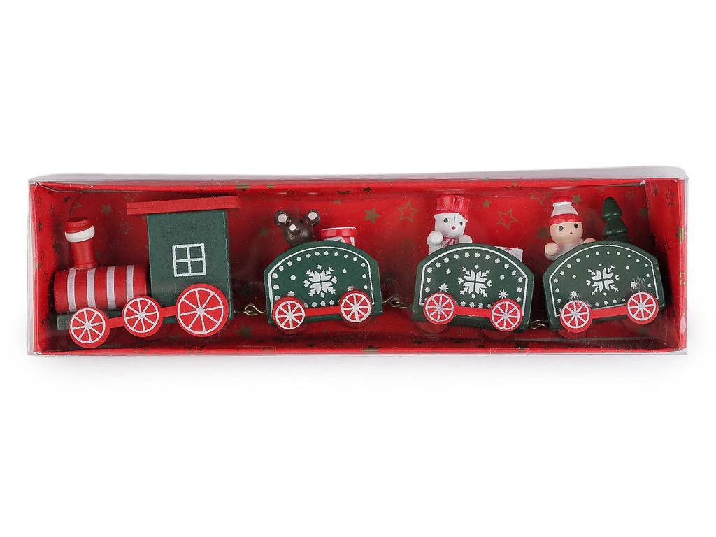 Dřevěný vláček k vánočnímu aranžování zelený