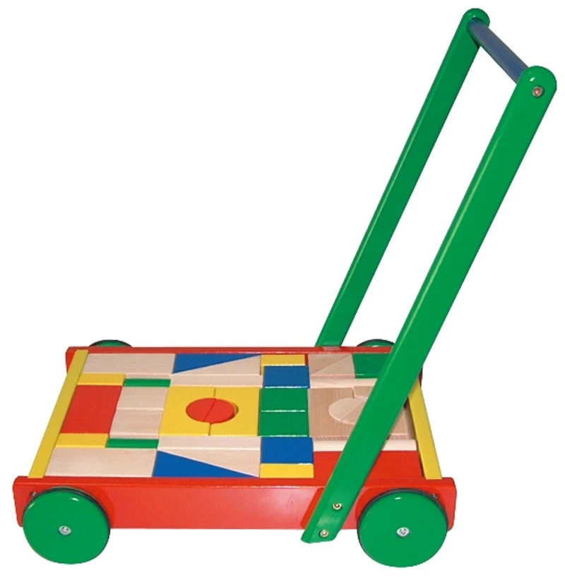 Krásné, barevné kostky ve vozíku, mohou děti využít i pro své první krůčky.