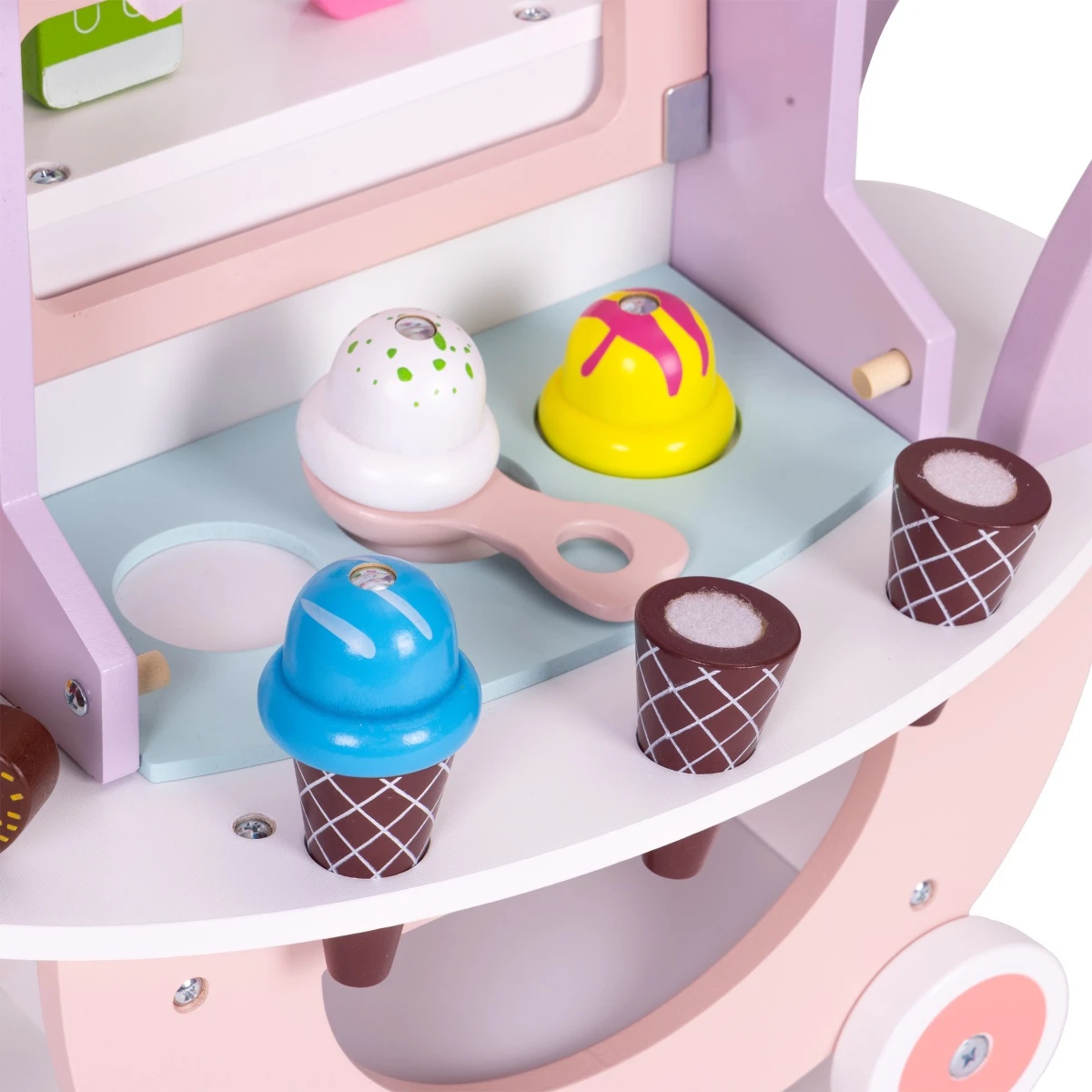Díky vozíku se mohou vžít do role prodavače chutné, barevné zmrzliny. Kromě radostné hry si dítě rozvíjí představivost, kreativitu a jemnou motoriku, a vozík se rychle stane oblíbenou hračkou.