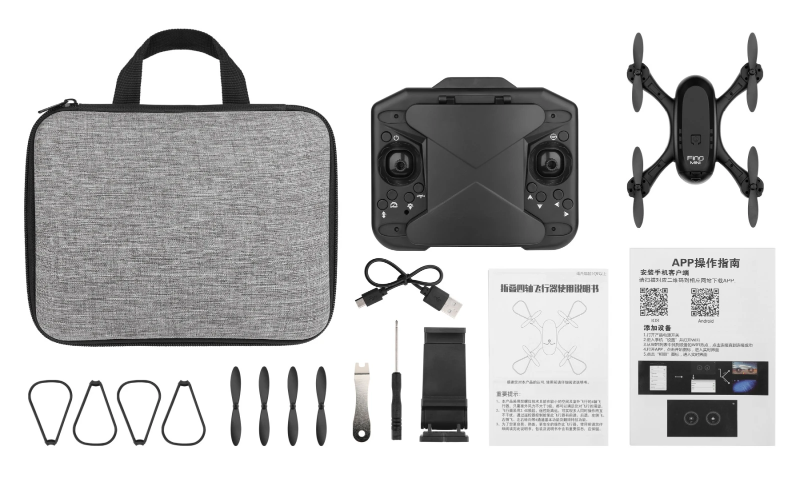 Ovládání je možné klasickým ovladačem nebo aplikací na chytrém telefonu. Na jedno nabití vydrží létat 8–10 minut, dolet je 50–80 metrů a nabíjení trvá přibližně 60 minut.