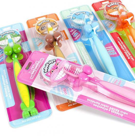 Dětské zubní kartáčky se zvířátky pro každého špunta od 3 let. Se jmenovitým držáčkem si poznají svůj vlastní kartáček a díky veselým barvám si budou zuby čistit rádi a s chutí.