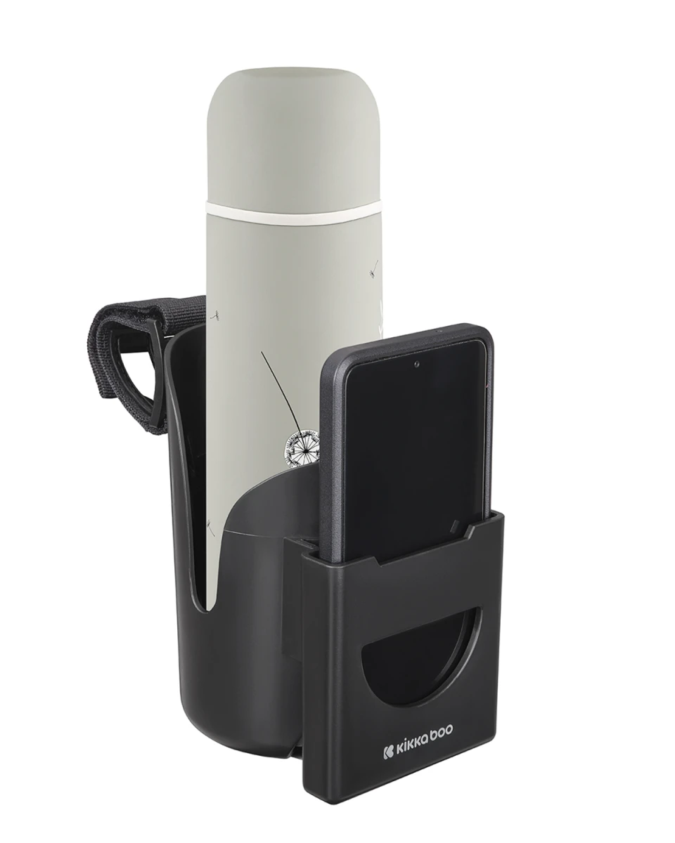 - držák na hrnek/lahev + přihrádka na mobil v jednom