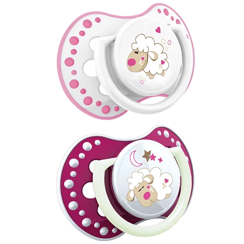 Dudlík silikonový dynamický NIGHT & DAY 3-6m 2ks LOVI Ovečka Růžová