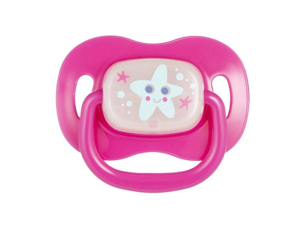 Praktický dudlík - díky svítícímu štítku jednoduše najdete dudlík během noci. Dostupný ve dvou barvách: modré a růžové.