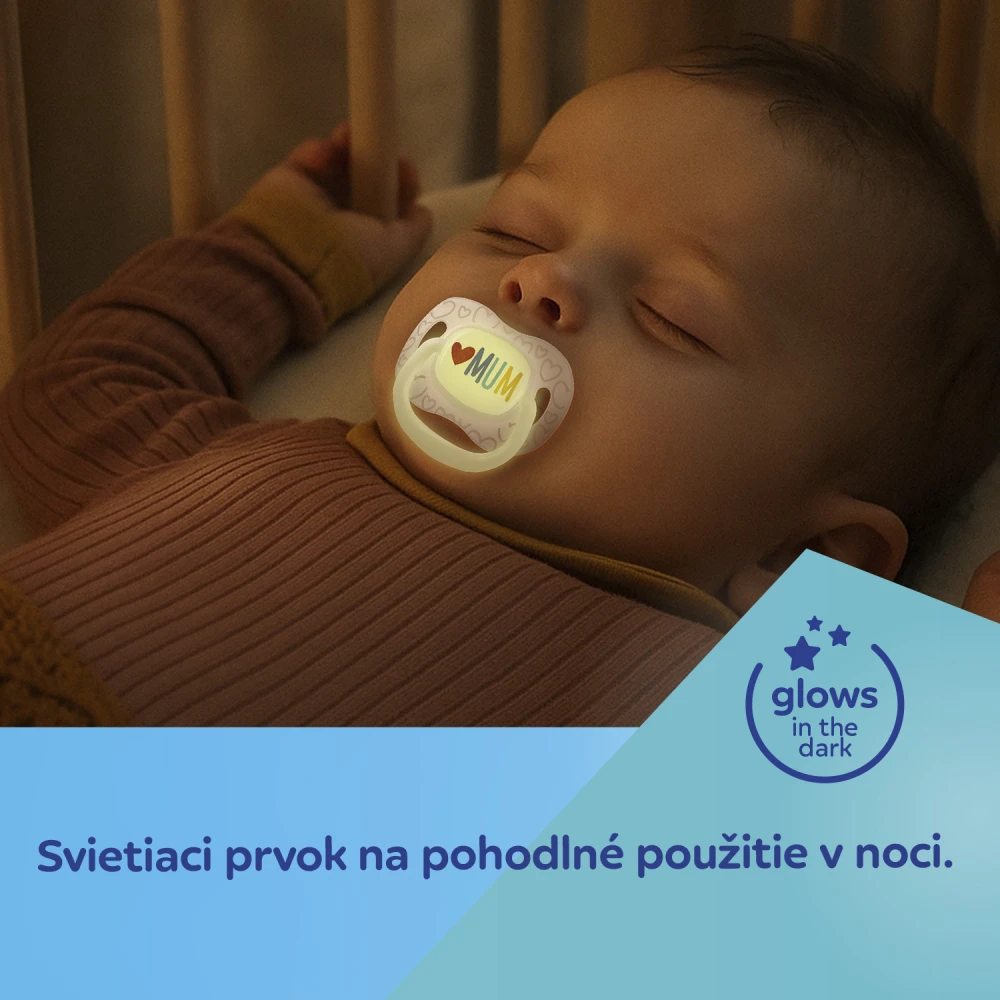 - Svítící prvky ve tmě - usnadňují nalezení dudlíku v noci.