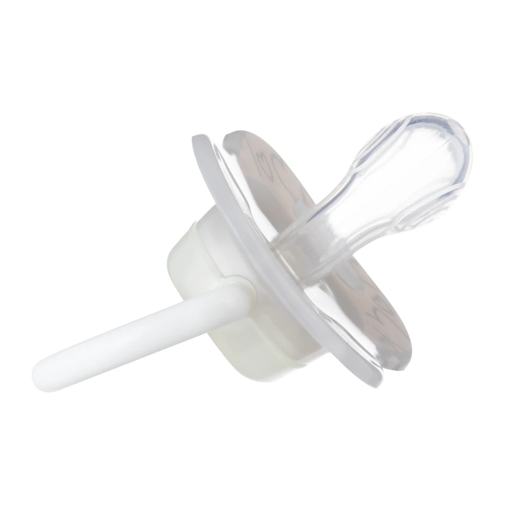 Pohodlná rukojeť usnadňuje podávání dudlíku miminku a zároveň umožňuje jeho připevnění na řetízek, aby nedošlo k jeho ztrátě či ušpinění.