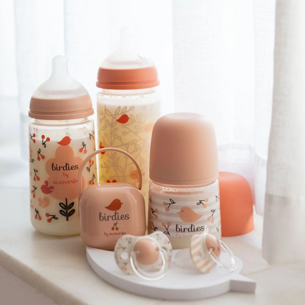Barvy použity pro dekorování výrobků značky Suavinex jsou přírodní a netoxické, přehnané čištění je může poškodit.
