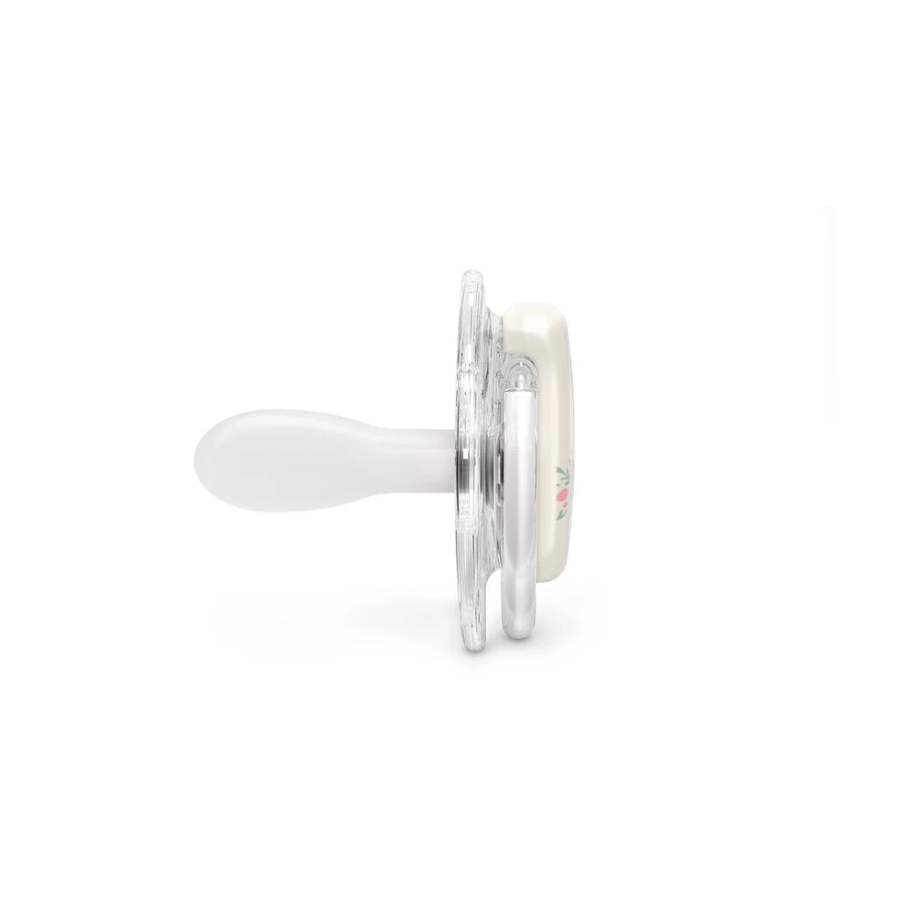 • Průhledný kroužek – zajišťuje moderní a stylový vzhled. Dudlík působí čistě a elegantně, hodí se ke každému oblečení i stylu.