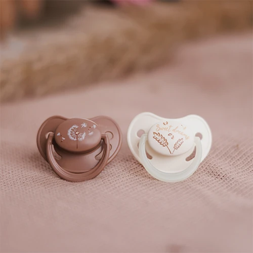 Balení obsahuje 2 dudlíky pro děti ve věku 18+ měsíců – jeden pro denní použití a jeden se svítící rukojetí, ideální pro noční zklidnění.