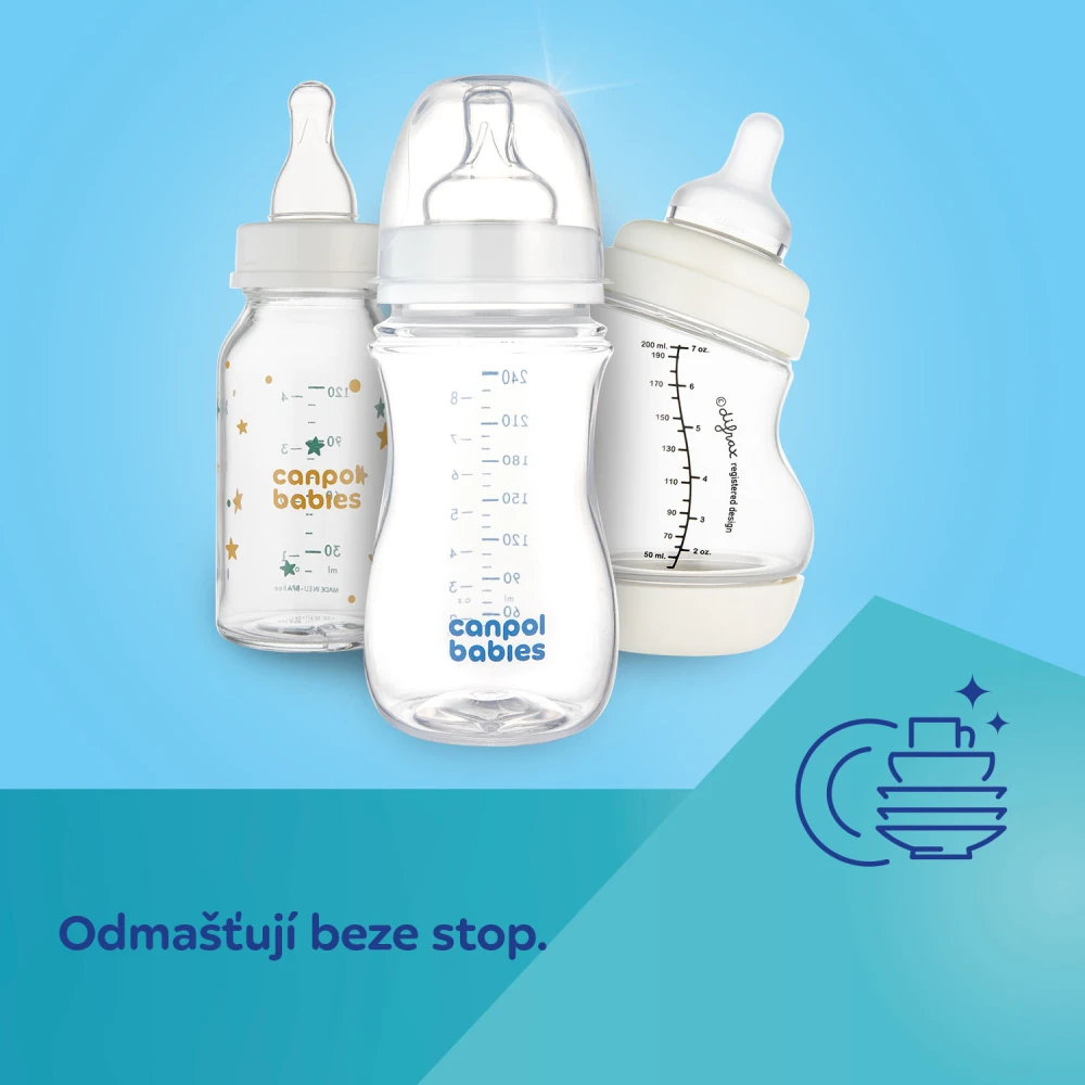 - Obsahuje aktivní kyslík – dokonale odstraní zbytky mléka a kaše.