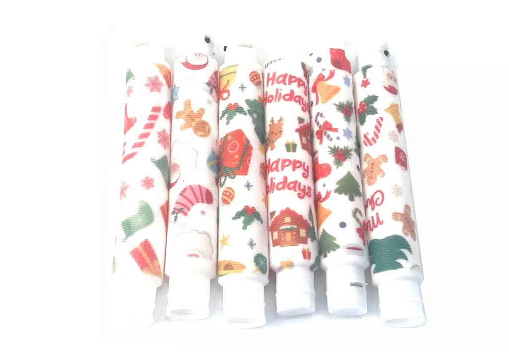 Fidget pop trubky 6 ks se světelným efektem vánoční