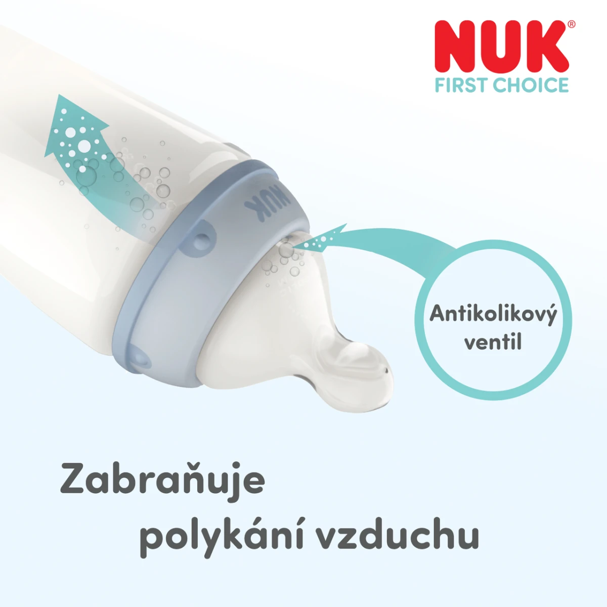 Díky osvědčenému antikolikovému systému NUK se během sání dostává do bříška méně vzduchu, což podporuje přirozené a klidné pití a pomáhá předcházet bolestem bříška. Méně bublinek znamená méně slziček – a spokojenější krmení.