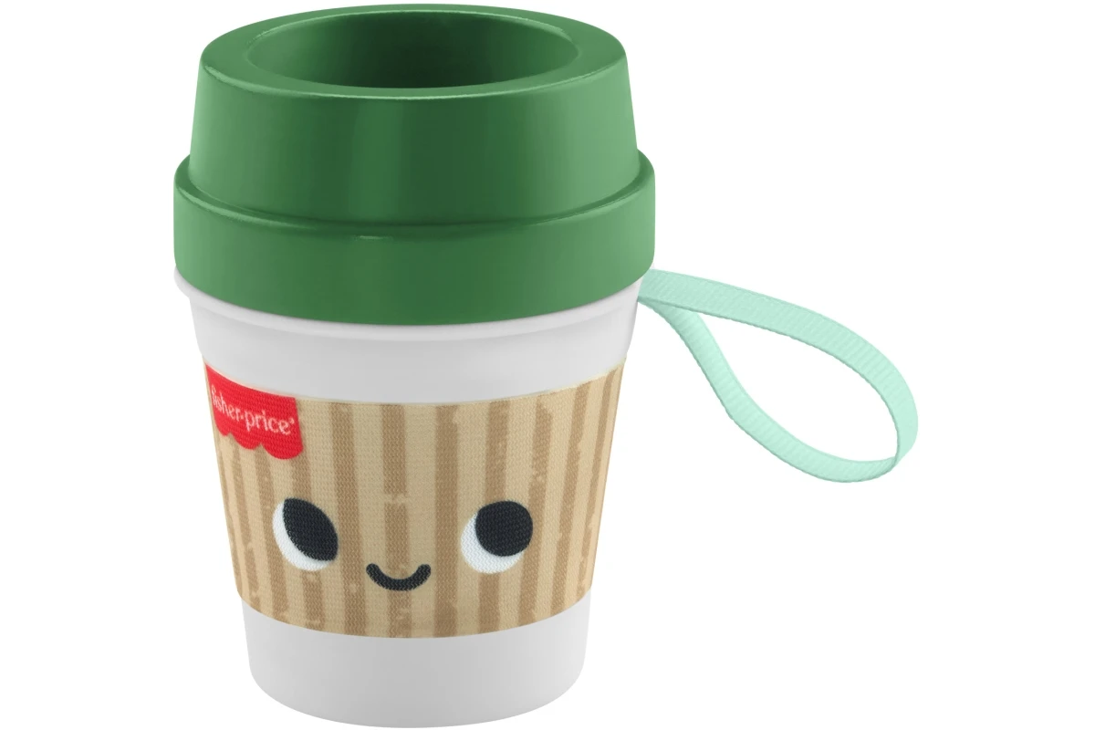 Začněte den hravě s kávovým hrnečkem pro nejmenší od Fisher-Price! Tento roztomilý kousek vypadá jako opravdový kelímek na kávu – uvnitř kelímku chrastí falešná kávová zrnka a měkké víčko slouží jako kousátko.