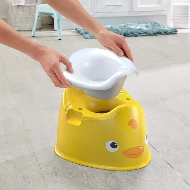 Každý se to jednou musí naučit a díky tomuto roztomilému kamarádovi půjde chození na nočník jako po másle. Díky nízkému sedátku a snadno uchopitelným rukojetím získá vaše miminko při sezení pocit jistoty a přátelská tvářička kachničky ho při učení na nočník pobaví. Vy oceníte zabudovaný chránič proti vyšplíchnutí pro chlapečky a vyjímatelnou mísu, díky které nočník vyčistíte snadno a rychle. Už si nemusíte dělat starosti, že vaše děťátko udělá nepořádek, nočník kachnička se o vše postará! Na zadní straně nočníku je rukojeť, takže ho můžete snadno přenášet. Nočník je stabilní a vaše maličké na něj bude chodit s důvěrou. Navíc se mu zlepší rovnováha a koordinace, jak si na nočník bude samostatně sedat a zase se z něj zvedat.