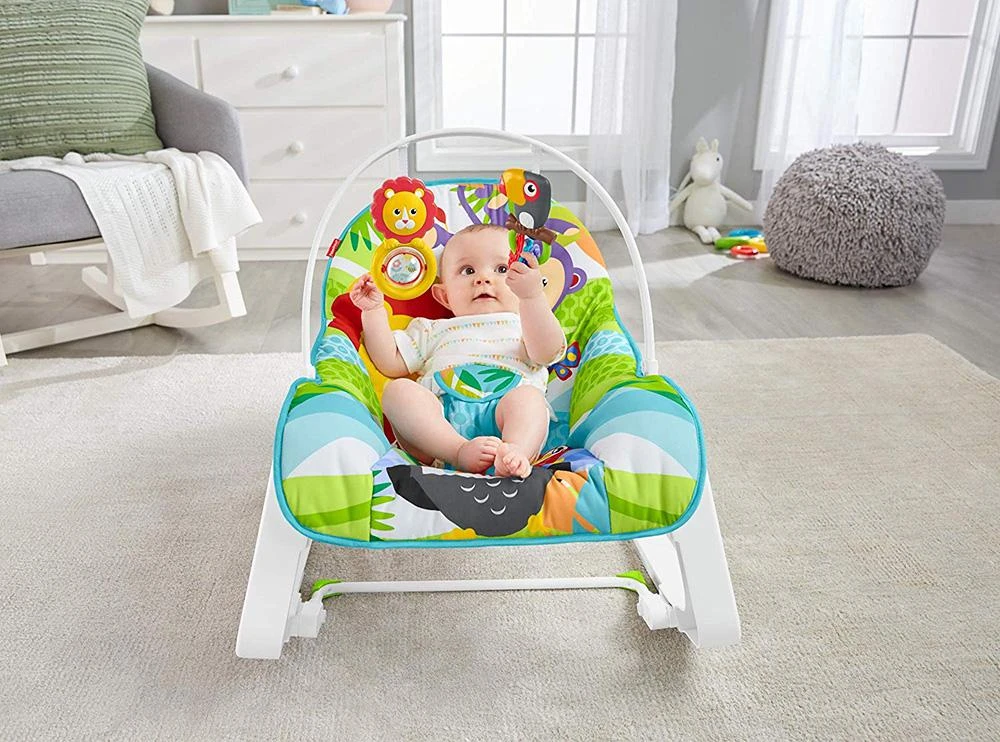 Křesílko má hluboké, pohodlné sedátko, nastavitelnou opěrku, nabízí uklidňující vibrace a barevný podsedák. Sedátko dbá na rozvoj miminka. Zábavná zvířátka podněcují vaše děťátko, aby na ně sahalo a plácalo do nich, a rozvíjí se tím jeho hrubá motorika. Děťátko si tím posiluje své malé svaly! Měkké látky, zářivé barvy a zábavné klapavé zvuky podněcují hmatové, zrakové a sluchové smysly.