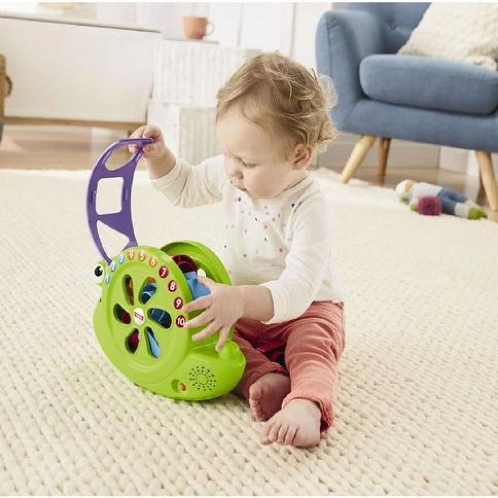 Šnek obsahuje 10 barevných kostiček, které mají různé tvary a barvy, které se děti naučí. Děti si procvičí koordinaci pohybu, zrak, sluch i motoriku.