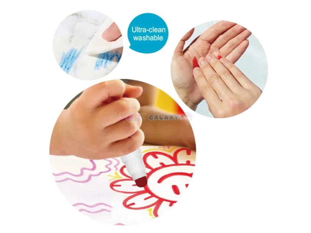 Končí období, kdy máte pokreslený nábytek nebo kdy trávíte hodiny u umyvadla, abyste dostali fixy z rukou. Fixy mají netoxický inkoust, kterýje navíc smvývatelný. Fixy díky tomu snadno odstraníte z pokožky, nábytku i oblečení.