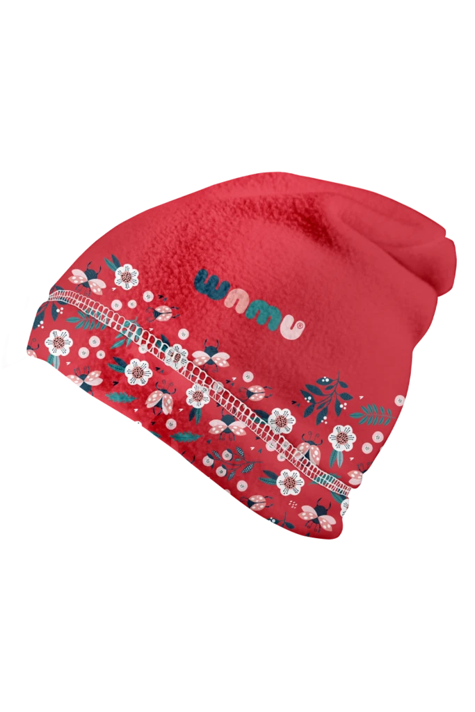 - Podzimní čepice pro děti Wamu fleece, pro holky, červená, spadlá