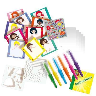 Obsahuje: 10 módních karet, 2 šablony s oblečením a vzory, 6 foukacích fixů, 5 krycích listů, nalepovací třpytivé doplňky, návod.