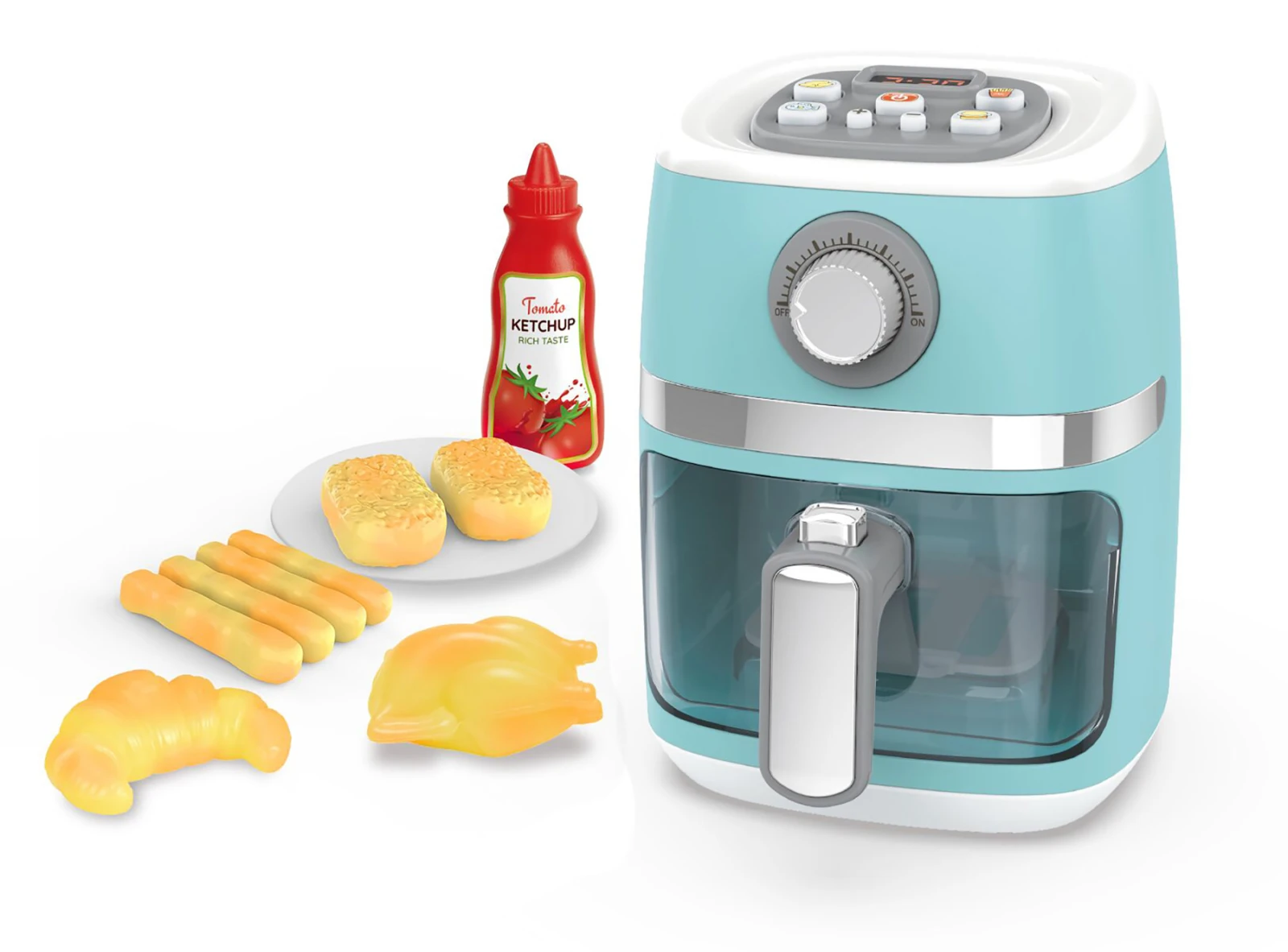 Potraviny součástí balení. Po vložení do fritézy a zapnutí potraviny mění barvu. Světelné a zvukové efekty. 3xAA baterie nejsou součástí.