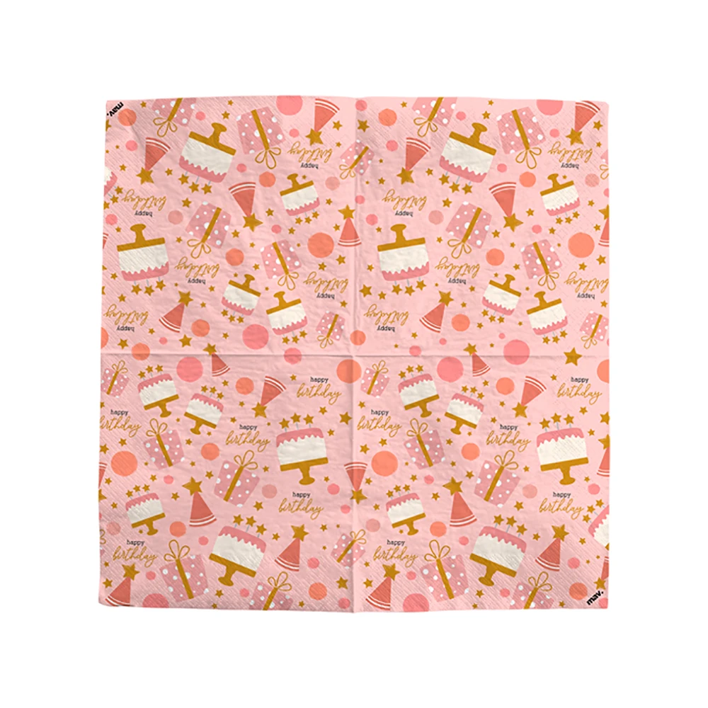 Stylové papírové ubrousky s růžovým konfetovým motivem a nápisem Happy Birthday jsou ideálním doplňkem každé narozeninové oslavy. Jemný design v růžových tónech dodá slavnostní tabuli elegantní a zároveň veselý vzhled.
