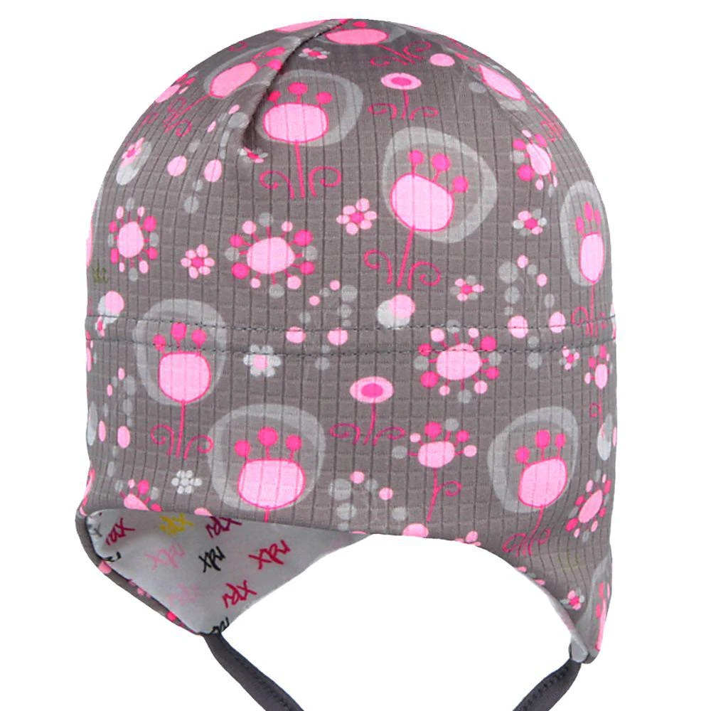 Kojenecká funkční zavazovací čepice na uši s potiskem bodláků z funkčního materiálu Picowinter. Funkční materiál Picowinter velmi dobře odvádí pot a zároveň hřeje (s počesem).