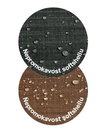 - Softshell + PU membrána: moderní materiál s funkčními vlastnostmi, odolnost vodě a větru, odvádí pot a dokonale zahřeje.