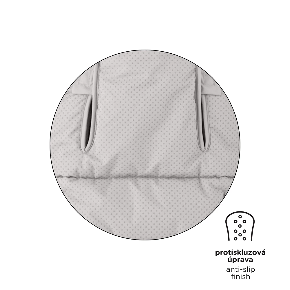 - Protiskluzový povrch na zadní straně (ABS) zabraňuje sklouznutí dítěte v kočárku.