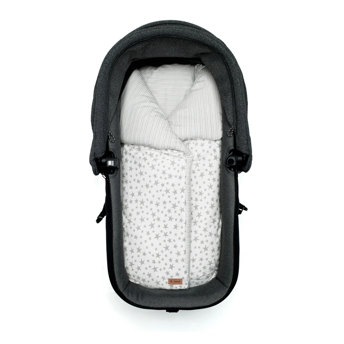 Fusak s teplou výplní do kočárku lze přeměnit na oboustrannou dětskou deku. Zip ve spodní části brání odkrytí nožiček, suché zipy umožňují otevření a upevnění bočních klop.