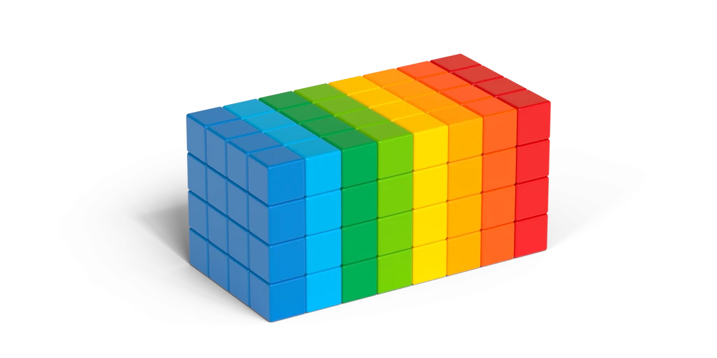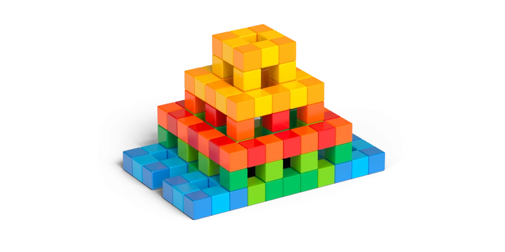Stavebnice je dodávána v praktické kartonové krabici, ve které jsou kostičky volně ložené a uspořádané do barevných bloků pro snadné vyjímání. Součástí balení je také návod s nápady na stavby, který pomůže uživatelům začít s tvořením.