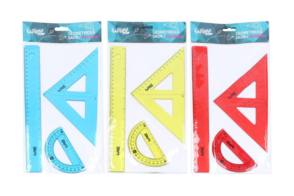 Sada obsahuje: rovné pravítko, trojúhelník, úhloměr