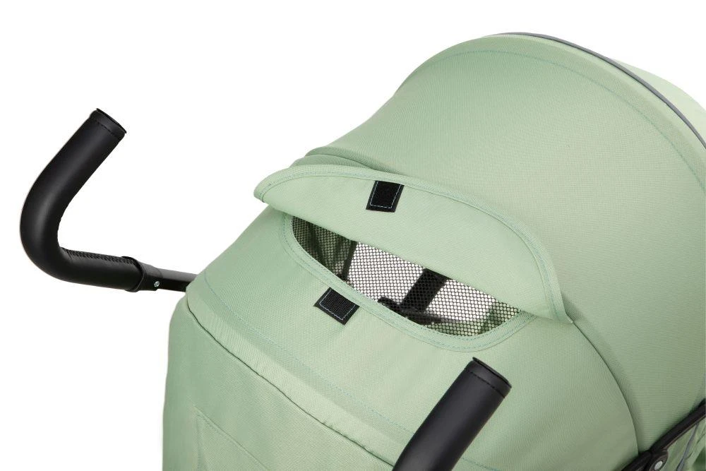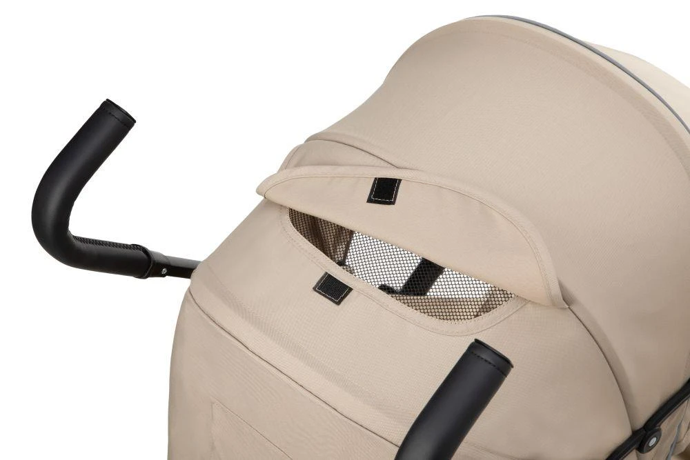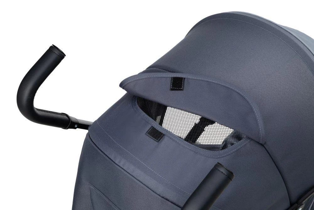 Kočárek MoMi AKIRA má stříšku s okýnkem, takže můžete na své děťátko během chůze nahlížet, aniž byste museli kočárek otáčet.