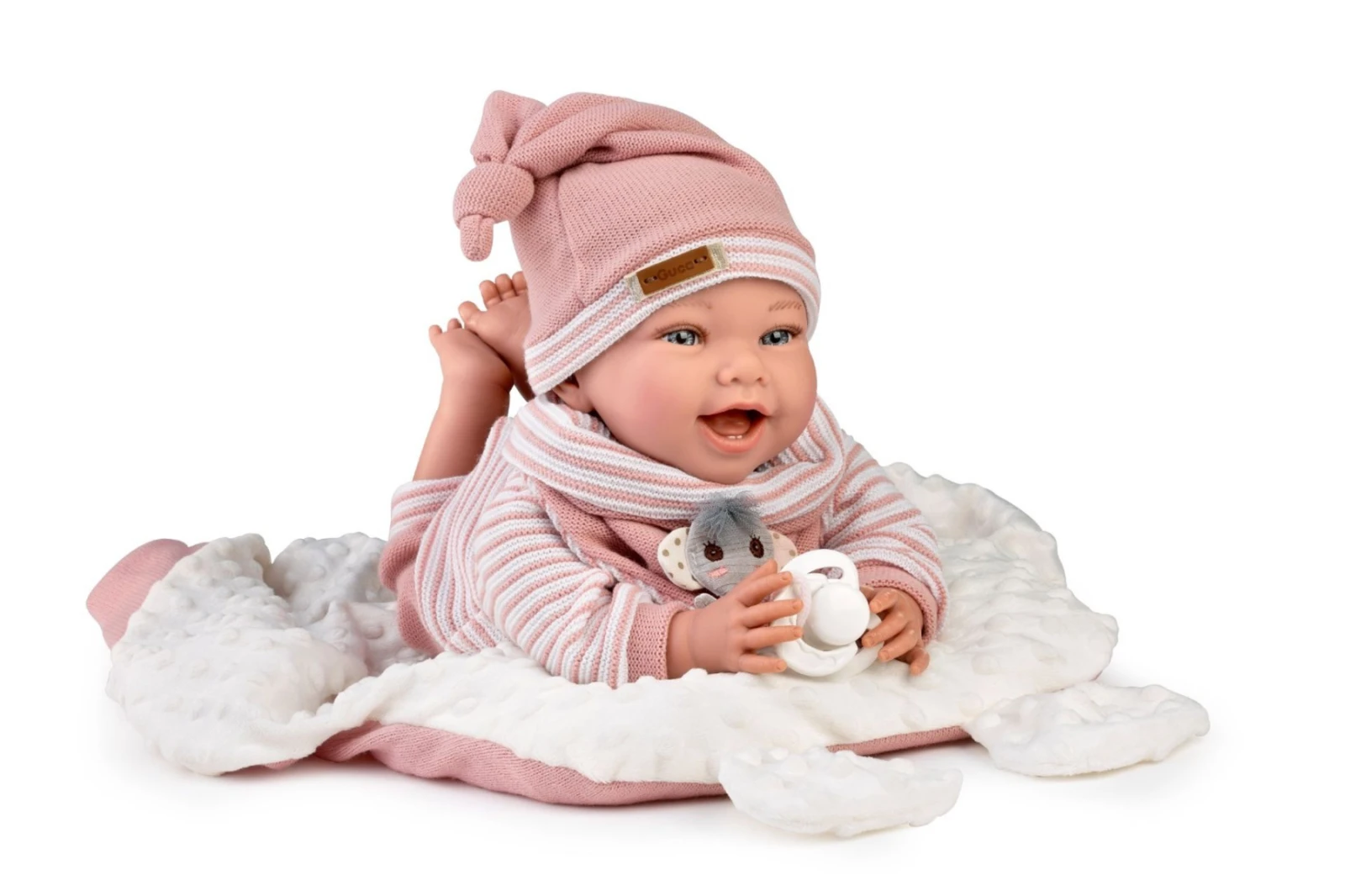 Velikost 42 cm. Ručně vyrobeno ve Španělsku, baleno v dárkové krabici. Doporučený věk od 3 let.