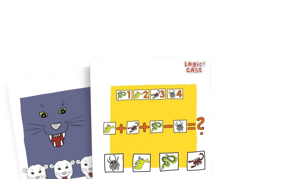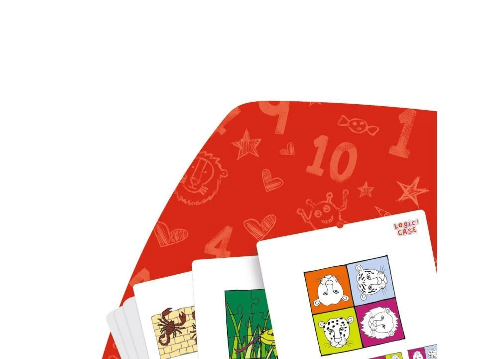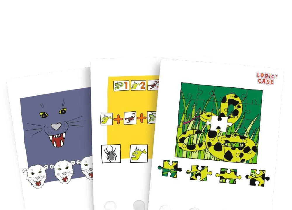 Děti mohou zkontrolovat, zda je jejich odpověď správná pomocí dřevěné špendlíku. Karta se dá vytáhnout. Toto posiluje a motivuje děti k řešení problémů a úloh. Byla hádanka vyřešena? Tak další výzva už čeká! Logic! CASE Sady rozšíření jsou dokonalým způsobem, jak snadno a pružně začít na základních startovacích sadách a potom pokračovat s novými úrovněmi obtížnosti, kde je vždy jiná hlavní téma a vzrušení z hry pokračuje!