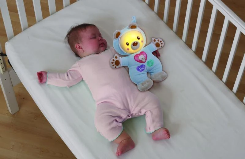 Melodie i zvuky jsou pro dítě uklidňující, stejně tak i pomalu zhasínající světlo. Časový spínač umožňuje navolit délku trvání melodií, zvuků i zpěvu (až 30 minut).