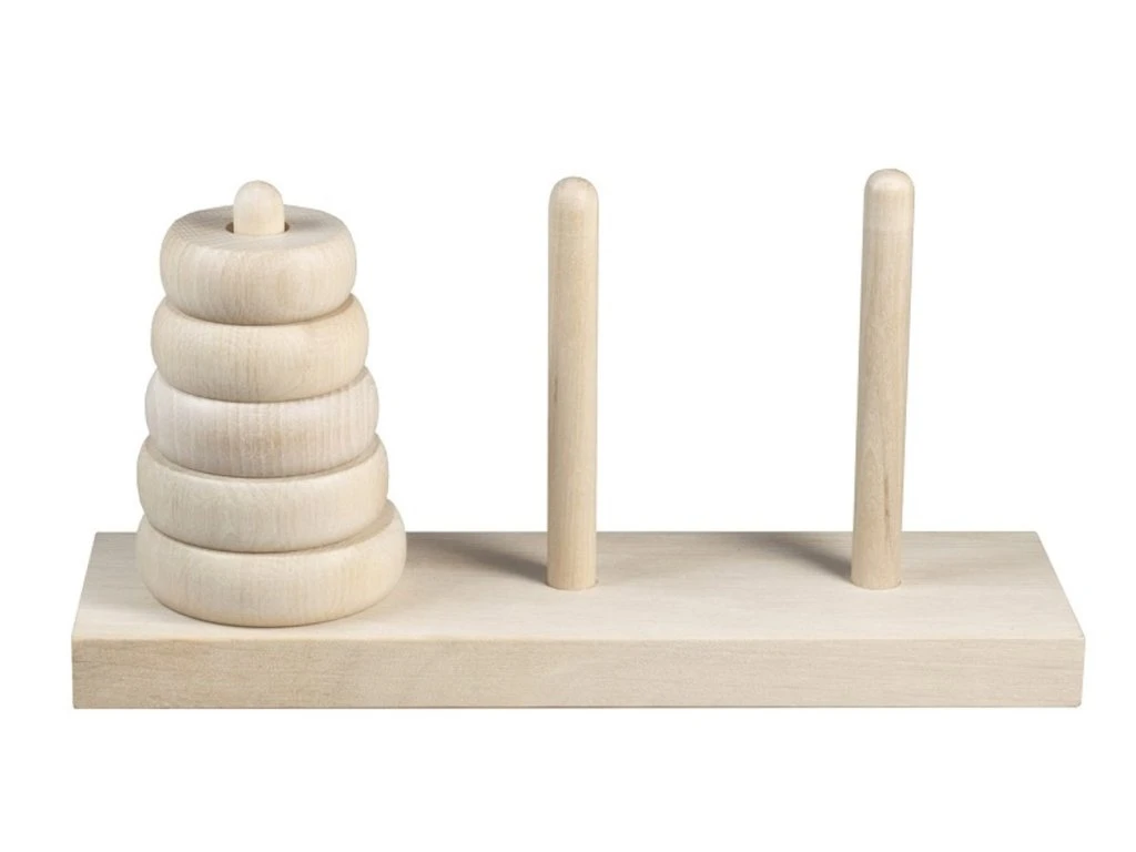 Hanojské věže jsou nadčasový matematický hlavolam, který baví děti i dospělé už od roku 1883, kdy jej vytvořil francouzský matematik Édouard Lucas. Cílem hry je přemístit všech pět kroužků z jednoho kolíku na druhý v co nejmenším počtu tahů – ideálně v 31. Pravidla jsou jednoduchá: větší kroužek nikdy nesmí být položen na menší.
