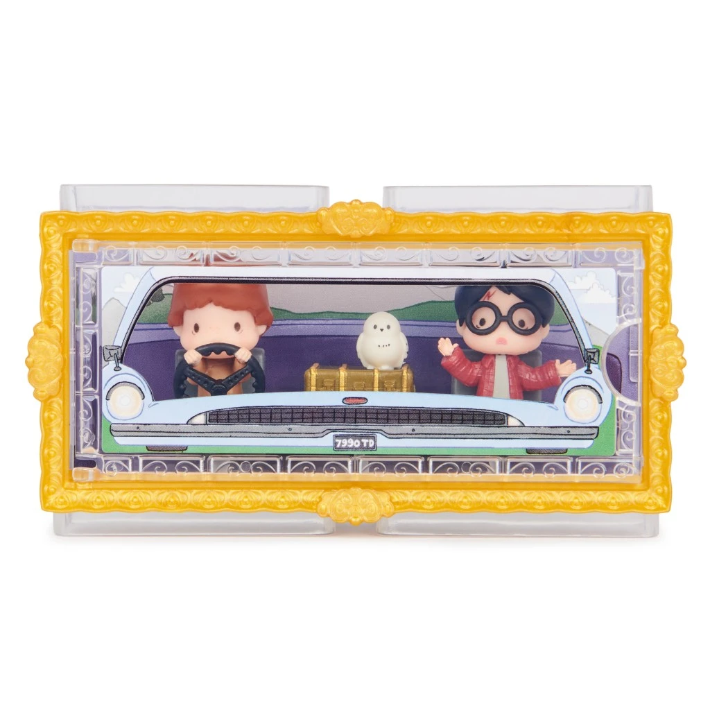 Toto multibalení obsahuje figurky Harryho Pottera, Rona Weasleyho a Hedviky o velikosti 3,81 cm, průhlednou krabičku a tři stojany na figurky. Rozbalte své postavy a objevte jejich rozkošné detaily: Harry a Ron v létajícím autě s Hedvikou na zavazadlech! Pozadí krabičky zobrazuje kouzelné auto Weasleyových, které vypadá, jako by v něm postavy seděly, což je detail, který si fanoušci a sběratelé Harryho Pottera zamilují.