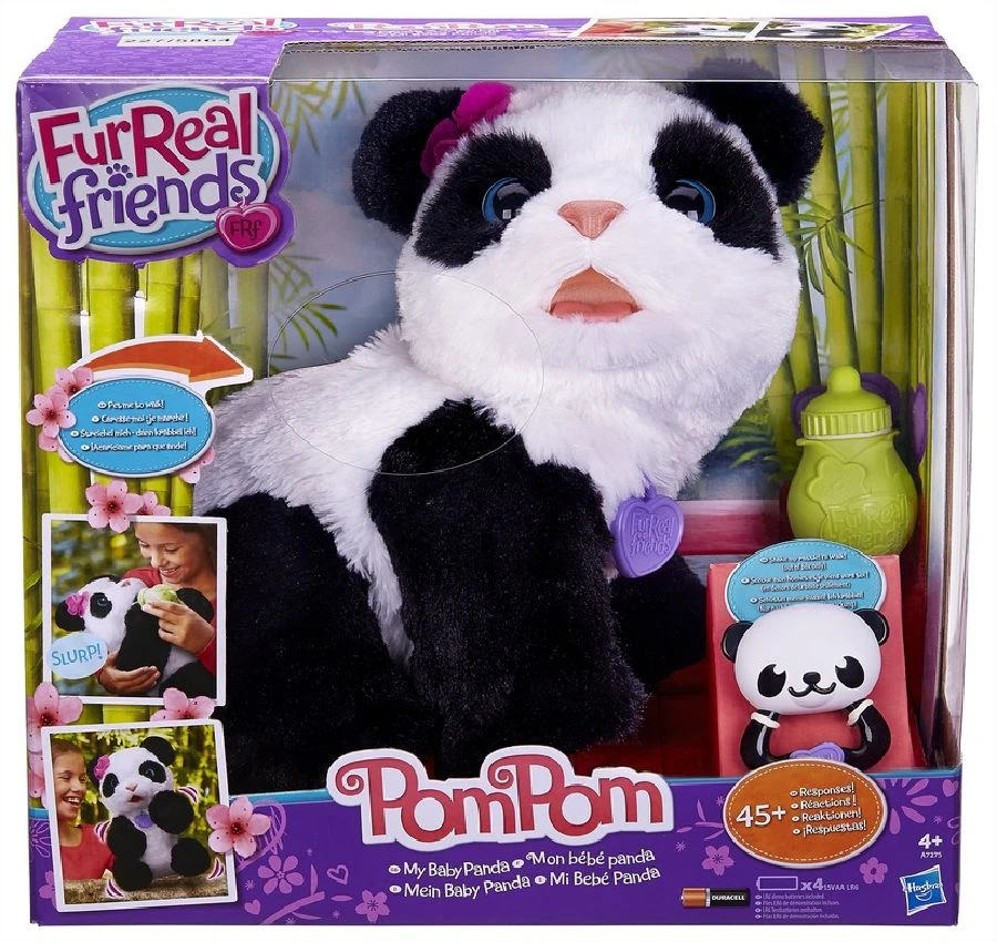 Ne každý může mít své vlastní pandí miminko! Pandí miminko Pom Pom vám chce patřit a vypadá a chová se jako skutečná panda! Když s ní mluvíte, reaguje na vás. Pokaždé, když zachrastíte jejím chrastítkem, k vám přiběhne. Když je čas na svačinu, můžete ji nakrmit z flašky, a když je čas na hraní, vrtí se a chichotá! Když máte za kamaráda pandí miminko, plyšová legrace nikdy nekončí!