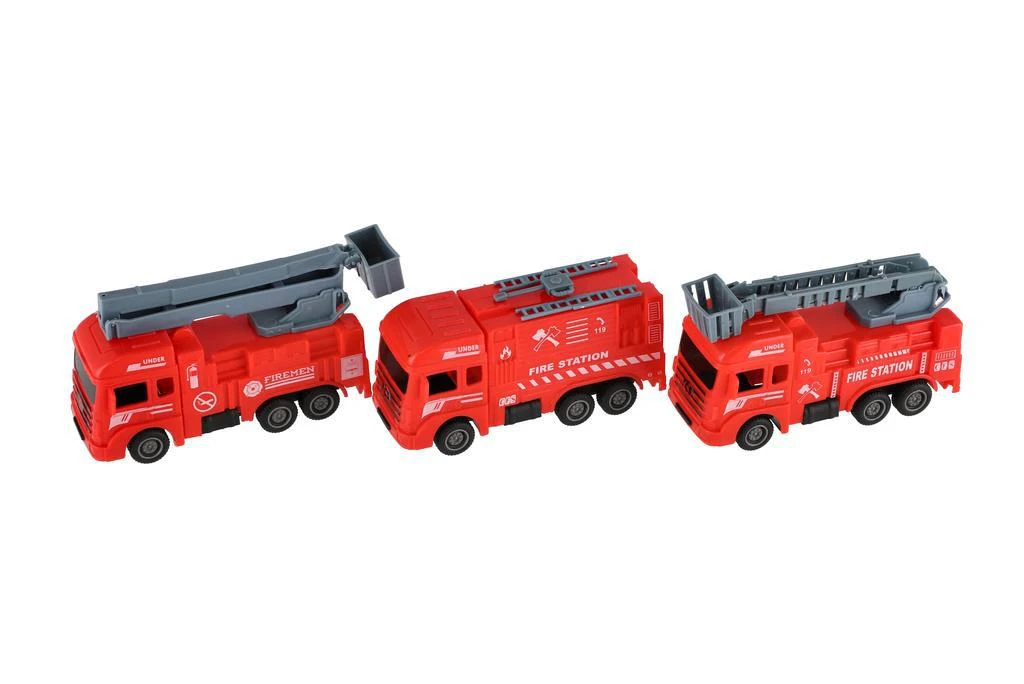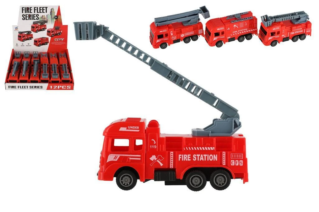 Hasičské auto plast na zpětné natažení 4 druhy, 11 cm