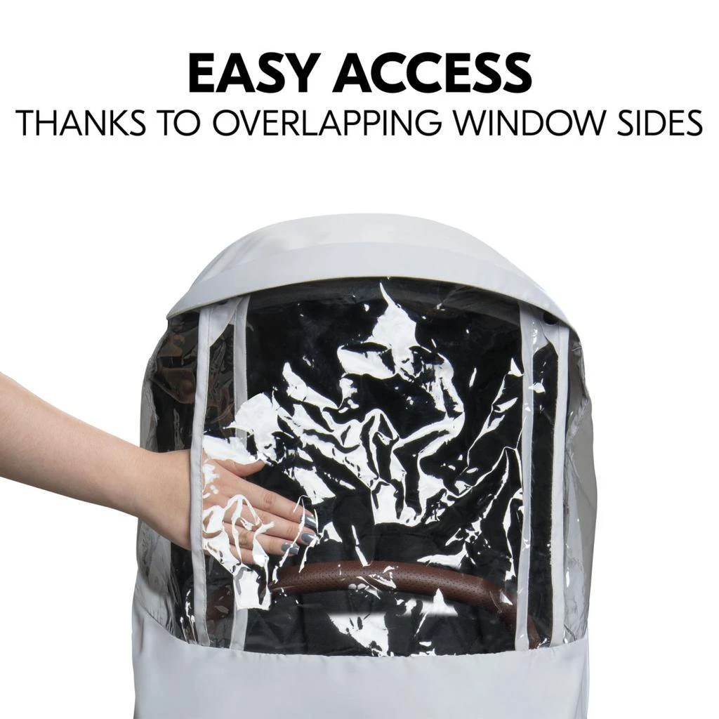 Díky překrývajícím se stranám okénka můžete kdykoli sáhnout do kočárku, aniž byste museli pláštěnku zcela otevřít.