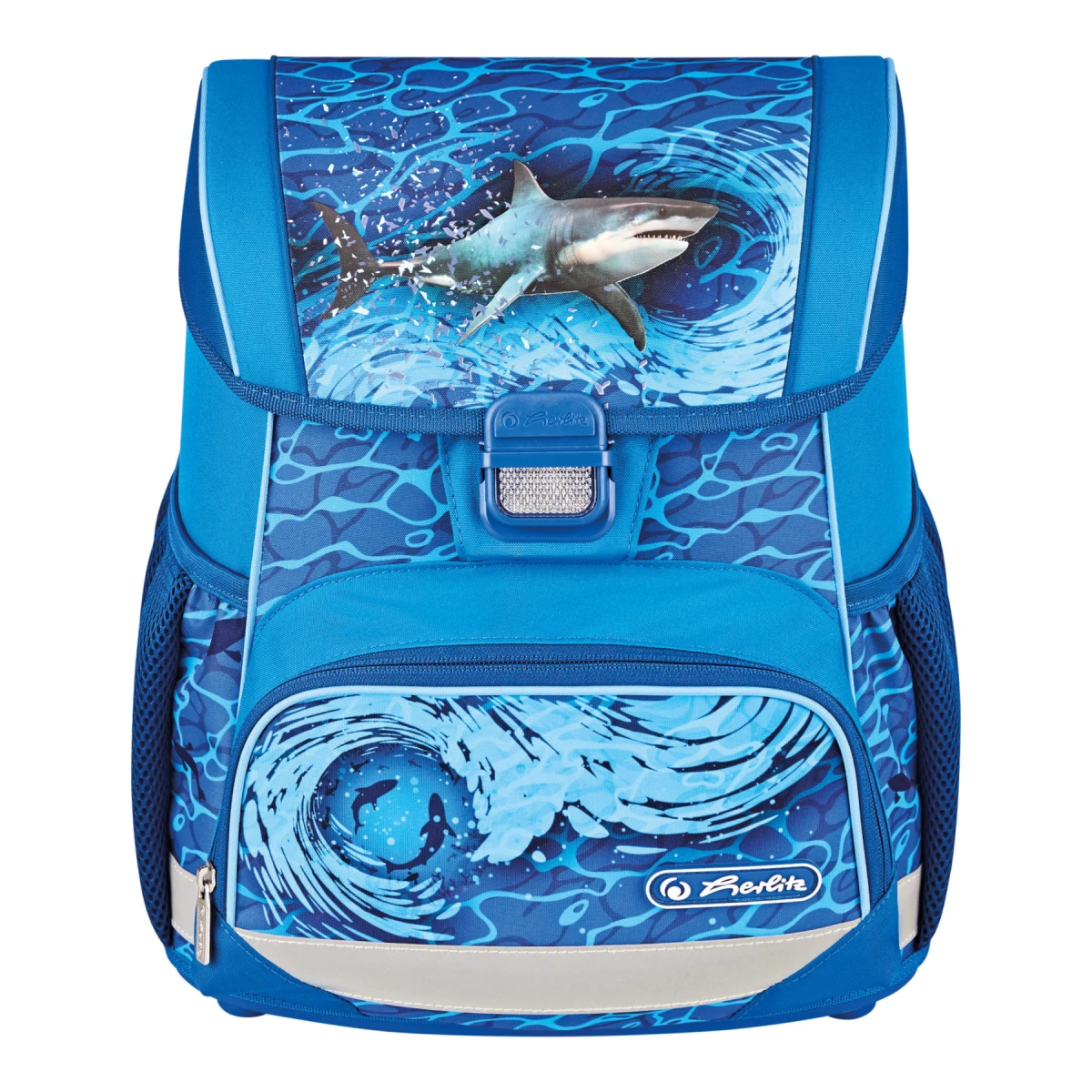 Ergonomicky tvarované a prodyšné polstrování zad, nastavitelné ramenní popruhy, výškově nastavitelný hrudní pás, hlavní kapsa s prostorem pro knihy, boční kapsy s elastickými pásky, přední kapsa na zip, stabilní spodní deska s nožičkami, pohodlná rukojeť, zavírání Click lock s odrazkou, reflexní materiály Oralite.