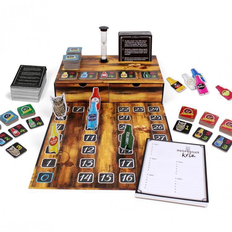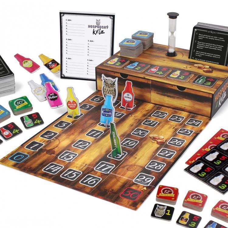 Hra Hospodský kvíz se hodí i domů či na párty. A díky jejímu praktickému balení si ji můžete vzít i na cesty či ven. Její herní plán je totiž součástí krabice a komponenty se dají uklidit do zásuvek.