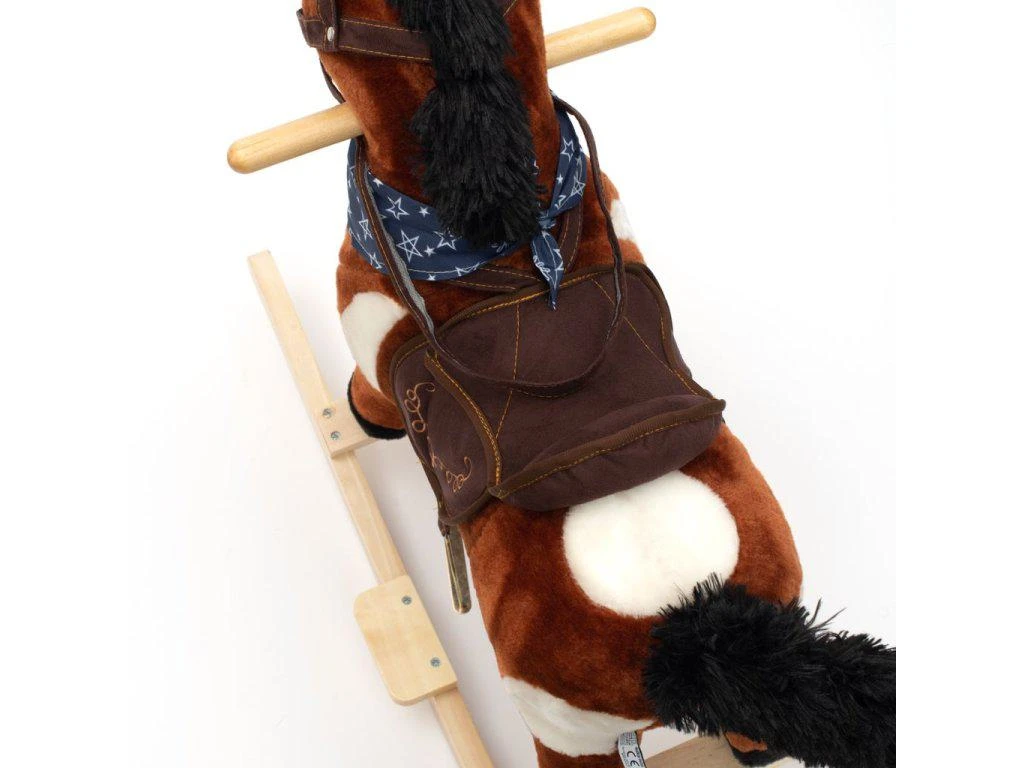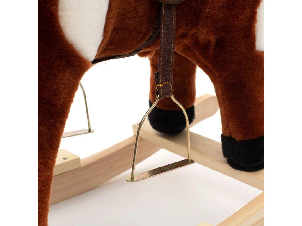 ROZMĚRY: výška koně včetně houpacích lišt 72 cm, délka lišt 72 cm, šířka lišt 28 cm, délka koně 55 cm, výška sedla od země 50 cm, šířka sedla 16 cm, váha 2 kg.
