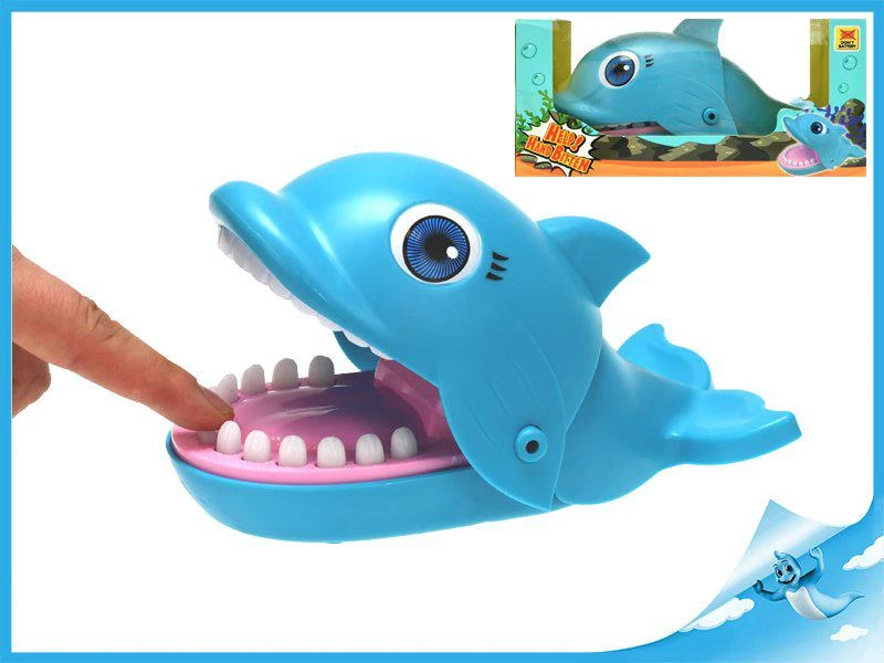 Otevřete delfínkovi pusu. Mačkejte jeho zoubky . Prohraje ten, koho delfínek kousne.