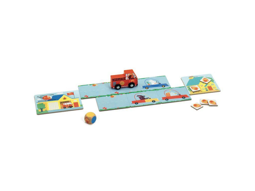 Pravidla hry určuje hod kostkou. Postupnými hody hráči uvolňují silnici a hledají vhodnou cestu. Po hodu kostkou musí otočit příslušné barevné políčko (na kterém je auto v dané barvě). Na druhé straně je zobrazena silnice, která uvolňuje hasičům cestu. Mohou se radit, které to bude. Pokud však padne na kostce symbol ohně, hořící plamen se zvětšuje. Hráči musí dorazit do cíle dřív, než vyčerpají všechny žetony plamene.