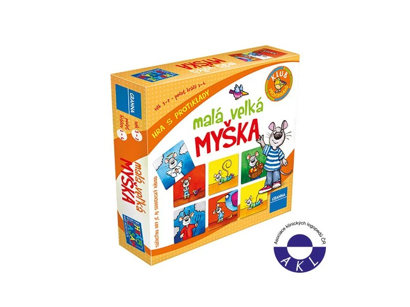 Do KLUBU PŘEDŠKOLÁKŮ patří i hra s protiklady, jejíž hlavní hrdinkou je myška. Jednou je malá, jindy velká, pak zase veselá, anebo smutná. Učí děti rozeznávat protiklady a procvičuje tak jejich postřeh, paměť i pozorovací schopnosti a zároveň jim rozšiřuje slovní zásobu. Hra pro 1 až 4 hráče od 3 do 7 let obsahuje 54 kartiček a umožňuje dvě herní varianty.