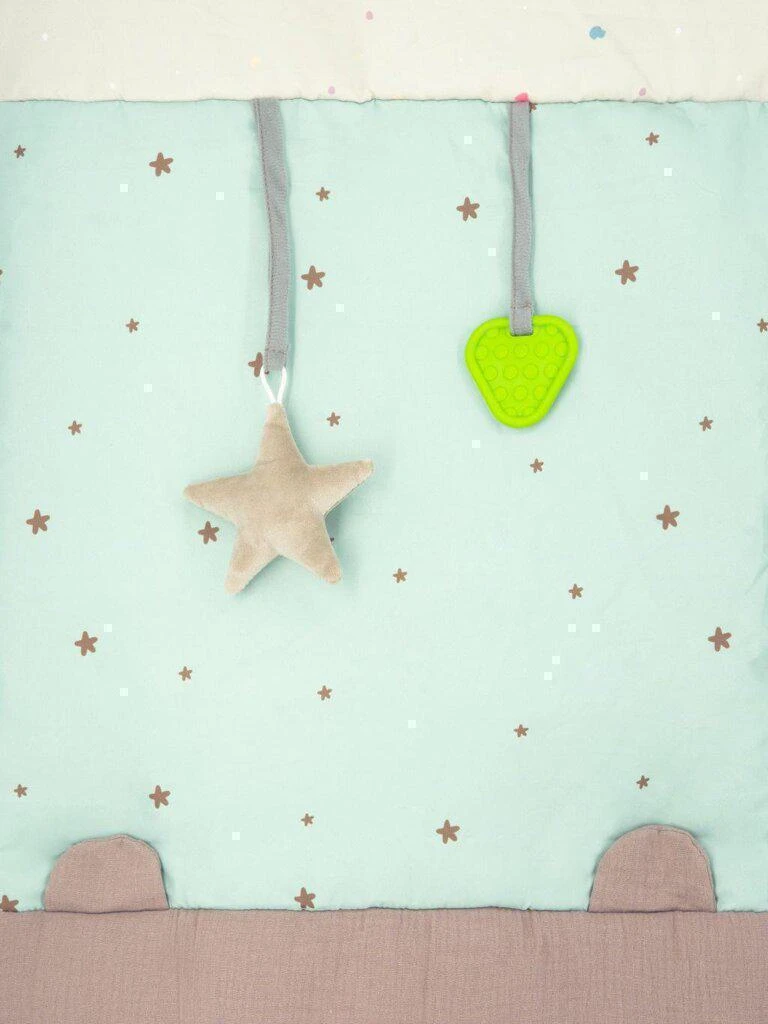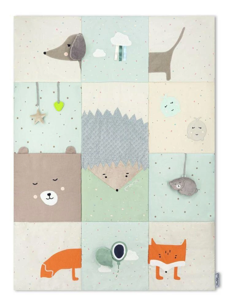 Hrací podložka MoMi VOLPI se skládá z prvků z různých látek a textur, které udržují pozornost dítěte a mohou mít velký vliv na jeho kognitivní vývoj. Její dílky jsou vyrobeny z plyše, minky a mušelínu. Obsahuje smyslové hračky, jako je zrcátko ukryté v otevíracím balónku, pískací nos medvídka, šustící ucho pejska, kousátko nebo měkké plyšáky, které povzbudí vaše dítě ke zkoumání světa a k různým aktivitám. Pastelové, tlumené barvy působí uklidňujícím dojmem a umožňují dítěti soustředit se na jednotlivé prvky, všimněte si zvířátek umístěných na hrací podložce i veselých medvídků MoMi!